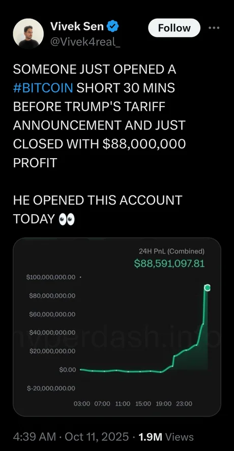 Τις τελευταίες 24 ώρες, περίπου $5 δισεκατομμύρια σε bitcoin έχουν ρευστοποιηθεί, μαζί με περίπου $4 δισεκατομμύρια σε ether και περίπου $2 δισεκατομμύρια σε solana, όπως αναφέρει η CoinGlass. Πρόκειται για το "μεγαλύτερο γεγονός ρευστοποίησης στην ιστορία των κρυπτονομισμάτων", δήλωσε η CoinGlass σε ανάρτηση στο X.