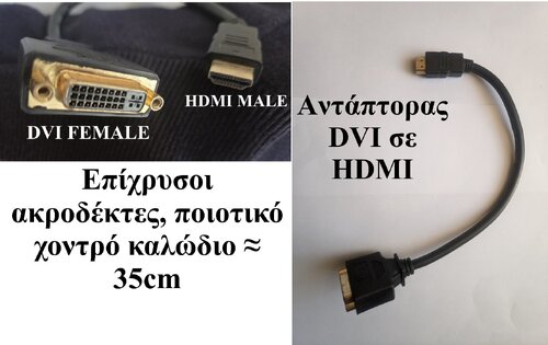 Αντάπτορας DVI to HDMI male με ποιοτικό καλώδιο ≈35cm και επίχρυσους ακροδέκτες, άριστη κατάσταση, στα 3€.