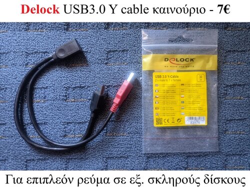 Delock καλώδιο USB3.0 διχάλα, για επιπλέον τροφοδοσία ρεύματος εξωτ. σκληρών δίσκων. Επωλήθη!