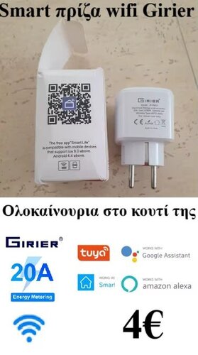 Smart πρίζα Wifi καινούρια στο κουτί της, GIRIER Tuya Wifi Smart Plug 20A EU Smart Socket Outlet with