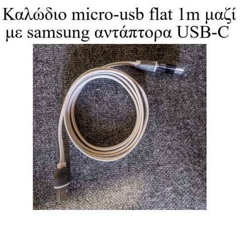 Καλώδιο λευκό micro-usb 1m flat που δεν μπερδεύεται μαζί με αντάπτορα samsung σε USB-C στα 3€