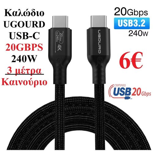 Καλώδιο USB-C to USB-C 240W, 20GBPS (usb 3.2 Gen2x2) Επωλήθη!