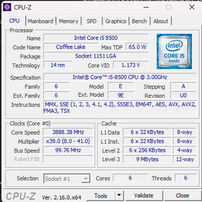 Επεξεργαστής Intel Core I5 8500 στα 3.00 ghz up to 4.10ghz με 9MB Cache