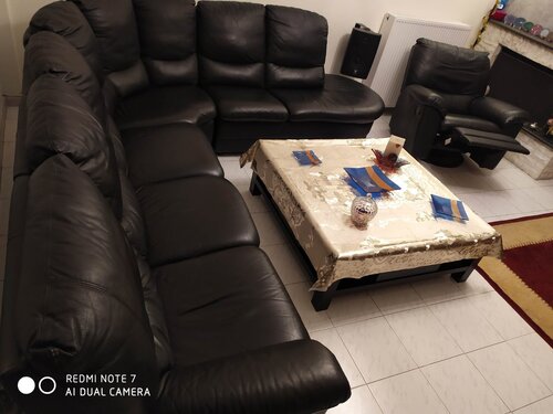 ΔΕΡΜΑΤΙΝΟΣ ΙΤΑΛΙΚΟΣ ΚΑΝΑΠΕΣ ΓΩΝΊΑ ΤΗΣ CALIA Μade in Italy ο καναπές είναι γωνία με ανάκλιντρο διαιρούμενος σε τρία κομμάτια στηριζόμενος σε μαύρα βιδωτά πόδια, αγορασμένος με παραγγελία από Ιταλία επενδυμένος με μαύρο δέρμα από μοσχάρι, η ακρηανή πολυθρόνα του είναι ανοιγόμενη με μηχανισμό επαναφοράς και με σύστημα ανάκλησης ξεκούρασης καi relax, είναι σε πάρα πολύ προσεγμένη και πλήρως λειτουργική κατάσταση. Έλεγχος Συναλλαγή & παραλαβή μόνο χέρι με χέρι και με δικό σας μεταφορικό μέσο από περιοχή Πειραιά. Τιμή 2.500€. 2000€. Νέα τιμή 1800€ 1700€.
