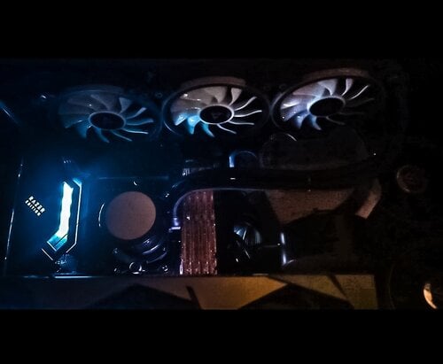 Όλα τα παρελκόμενα μέσα στο κουτί με αλλαγμένα fans ρυθμιζόμενα από μικρό τηλεχειριστήριο (ταχύτητα και rgb) καθόλου θόρυβος σε max speed (τα εργοστασιακά κάηκαν)