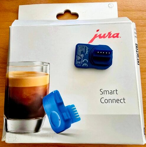 Πωλείται το Jura Smart Connect, με το οποίο είναι δυνατή η σύνδεση συμβατής καφετιέρας Jura με κινητό τηλέφωνο, ή tablet, μέσω Bluetooth.