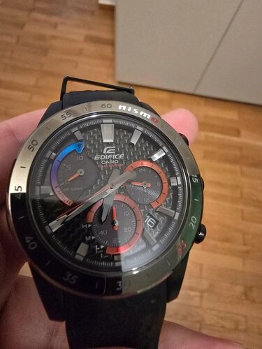 Casio Edifice Nissan Nismo Χρονογράφος Solar με Καουτσούκ Λουράκι σε Μαύρο χρώμα EQS-930NIS-1AER