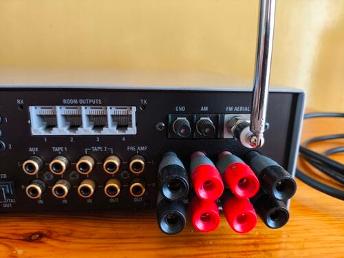 Ολοκληρωμενος ενισχυτης 4 Ohm: 2x 75 W,με cd και tuner και multiroom Knekt system ειναι η τριτη γενια του ενισχυτη,μαζι θα δωθουν και τα αναλογα βυσματα τερματισμου BFA τα οποια μπορει να τερματισει κανεις στα καλωδια που ηδη εχει η και να κουμπωσει αυτα στον ενισχυτη και τις ετοιμες τερματισμενες μπανανες των καλωδιων του σε αυτα.Η εξοδος προενισχυσης εχει ιδιο gain 28.5db με τον τελικο της linn av5125 που εχω σε αλλη αγγελια και μπορει να οδηγηθει απολυτα με τον πολυκαναλο για διενισχυση.Οδηγη μονος του με ανεση και σχετικα δυσκολα ηχεια σε ανεκτες σταθμες.Λειτουργικος σε ολα τα τμηματα του και στον ενισχυτη και στο cd και στο tuner διαθετει το δικο του τηλεχειριστηριο της linn