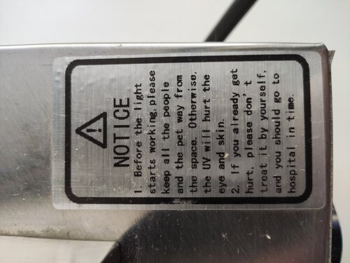 - Κατά την διάρκεια της λειτουργίας απαγορεύεται να υπάρχει άνθρωπος στο χώρο ή ζώα.