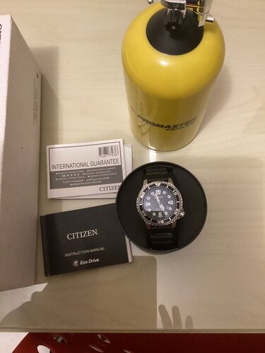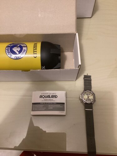 citizen pro master aqualand μαζί μετά χαρτιά τους και τις μπουκάλες-κουτιά τους όλα με τα χαρτάκια τους φουλ σετ το ένα ηλιακό και το άλλο diver watch ειδική έκδοση με nato strap για γνωστές