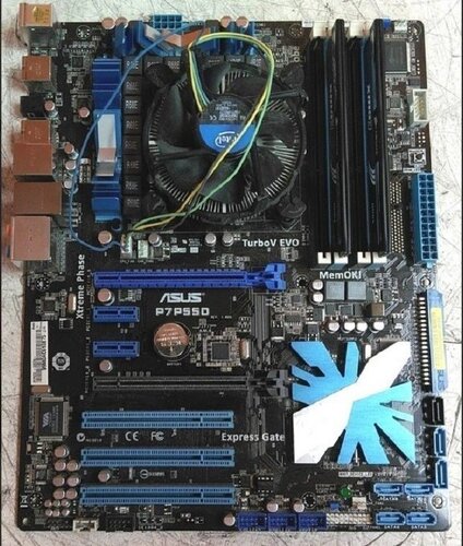 i7-860 4core-8 threads 2.80GHZ + Gigabyte P55-UD3L +9GB RAM(4+4+1 , η μια θέση μνήμης απο τις 4 , δεν λειτουργεί ) -->)60euro
