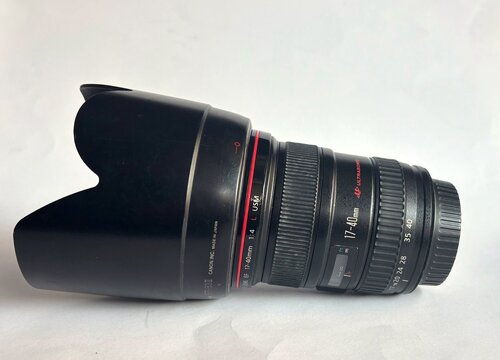 CANON zoom lens EF 17-40mm F4 L USM - με lens hood, λείπει το μπροστινό καπάκι / 350€