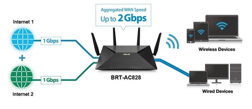 Hardware Dual-WAN - Dual physical WAN ports for ultimate speed and reliability, with up to 2Gbps aggregated bandwidth and failover capability.