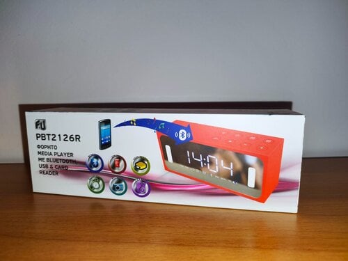 Πωλείται το εικονιζόμενο φορητό F&U Media Player ψηφιακό ξυπνητήρι για αναπαραγωγή μουσικής με ενσωματωμένο ραδιόφωνο, Hands-Free με Bluetooth, USB και Card Reader.
