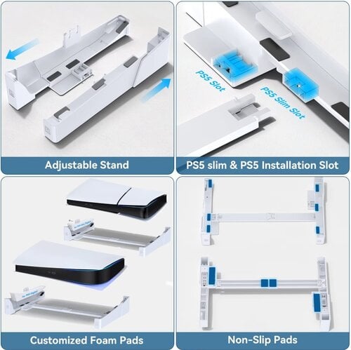This stand allows you to place your PS5/PS5 Slim/PS5 Pro console in a horizontal position while still protecting the bottom panel from being scratched.