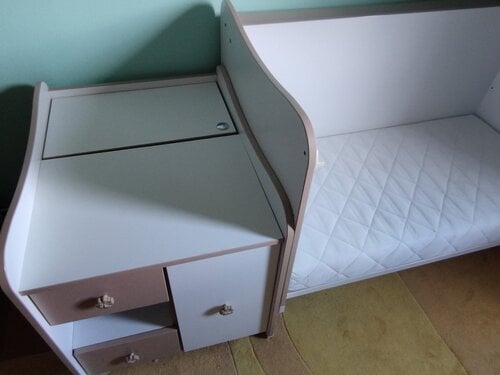Πολυχρηστικό έπιπλο - αλλαξιέρα, με καπάκι και ντουλάπια με εσωτερικό ράφι, που μπορεί να τοποθετηθεί εναλλακτικά και στις 2 πλευρές του κρεβατιού. Κατά την εφηβική χρήση, αποσπάται από το κρεβάτι και λειτουργεί ως ανεξάρτητο έπιπλο με πόδια.