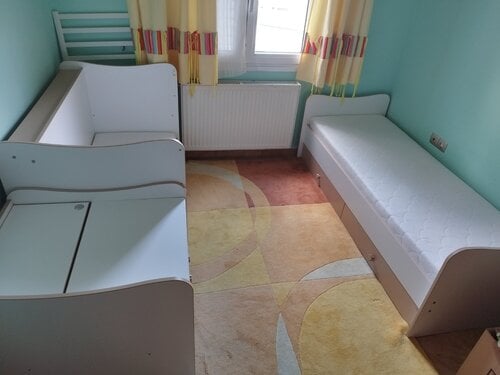 Διαστάσεις: Κρεβατιού: Βρεφικού: 197 x 83 x 108 cm. Εφηβικού: 196 x 81 x 63 cm. Έπιπλο - αλλαξιέρα: 62 x 81 x 67 cm. Γραφείο: 125 x 70 x 81 cm.