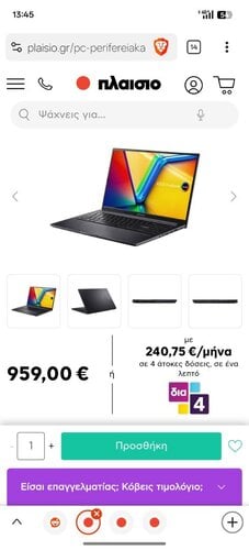 Asus Vivobook OLED X1505VA-OLED-L931W Laptop 15.6" OLED Core i9 13900H/40 GB/1 TB SSD ισχυρότερο i7