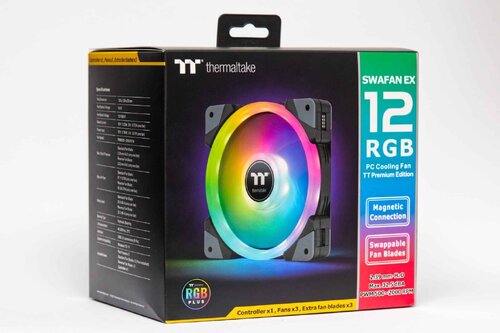 3) [3 τεμάχια] Thermaltake SwaFan EX 12 RGB (3Pack) Black (περιέχει hub) --> 70 ευρώ ανά τεμάχιο (το κάθε τεμάχιο περιέχει 3 fans).