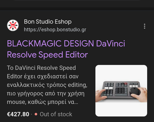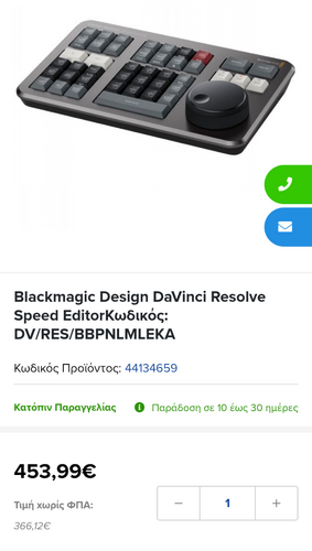 Το πληκτρολόγιο Speed Editor σας το αφήνω στα 99,00€ χωρίς τα μεταφορικά των ΕΛΤΑ, πάντως, σε κάθε περίπτωση θα το στείλω σαν ως δέμα, με κωδικό παρακολούθησης/ιχνηλάτησης.
