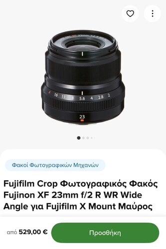 3) Fujifilm Crop Φωτογραφικός Φακός Fujinon XF 23mm f/2 R WR Wide Angle για Fujifilm X Mount μαύρος