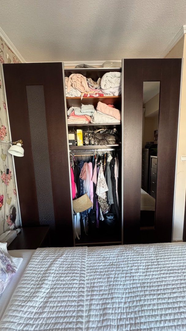 Τρίφυλλη ντουλάπα από μασίφ ξύλο δρύς χρώματος βέγκε