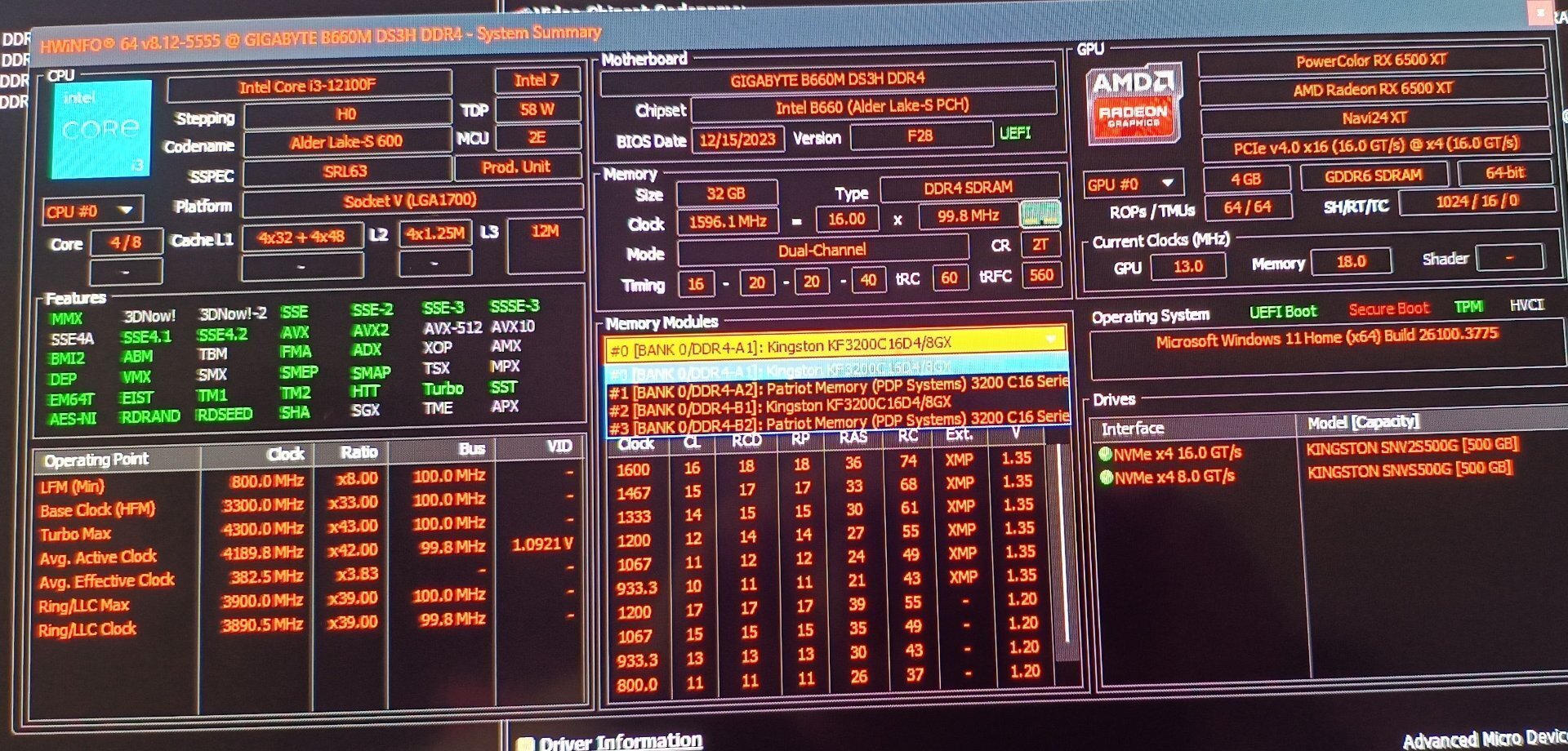 • GPU: PowerColor RX 6500 XT 4 GB GDDR6