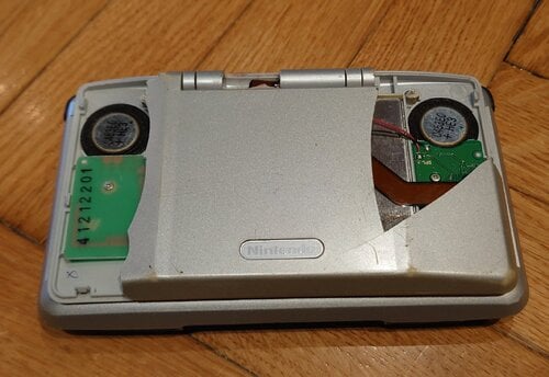 Η κονσόλα ανάβει και φορτίζει κανονικά, παιζει και τα παιχνιδια, απλά δεν έχει φωτισμό και δεν ακούγεται σχεδόν καθόλου ο ήχος. Επίσης όπως βλέπετε και στην φωτο, το κέλυφος της πάνω οθόνης έχει σπασίματα στην πισω του πλευρά. Δεν υπάρχει το stylus. Οι δύο οθόνες γενικά είναι σε καλή κατάσταση.