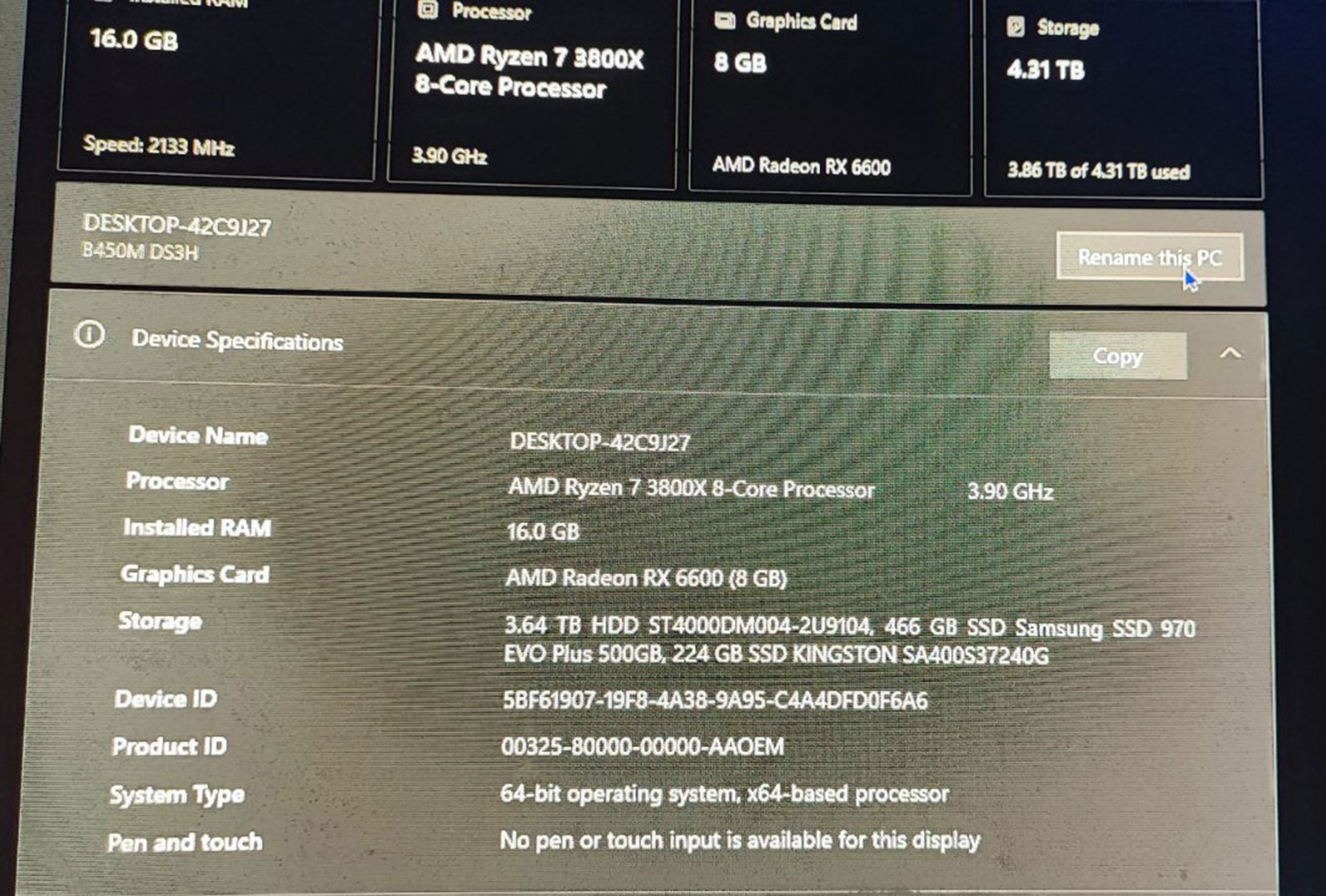 AMD Ryzen 7 3800X, 16GB RAM, M/B GIGABYTE