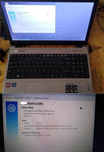 Laptop Acer Aspire 5538G, δουλεύει κανονικά εκτός από τα ηχεία του, θα δοθεί χωρίς την μπαταρία και τον σκληρό......50 ευρώ
