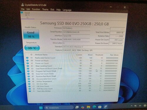 Samsung ssd 860 evo 250gb 98% ΥΓΕΙΑ