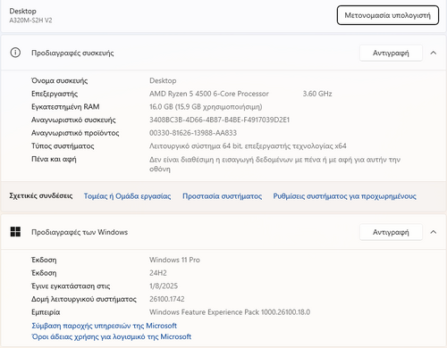 CPU : AMD Ryzen 5 4500 3.6GHz https://www.skroutz.gr/s/35729536/AMD-Ryzen-5-4500-3-6GHz-Epexergastis-6-Pyrinon-gia-Socket-AM4-se-Kouti-me-PSyktra.html Καινούριος!