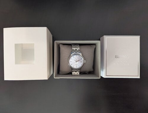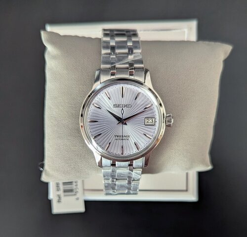 Seiko Presage SRP841 Cocktail Time - Ice Blue - κλασικό unisex ρολόι με μεταλλικό μπρασελέ. Ανοιγμένο κουτί αλλά αχρησιμοποίητο με το ταμπελάκι του, σε άριστη κατάσταση στο κουτί του. Ημερομηνία αγοράς: 30 Νοεμβρίου 2024.
