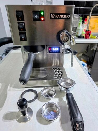 Πωλείται η μηχανή του τίτλου απο της καλύτερες οικιακές μηχανές σε άριστη κατάσταση αγορασμένη 2 χρόνια με τα service της καθαρισμένη σαν καινούργια ριθμισμένη 9 μπαρ, καθώς και τοποτέτηση PID και ρύθμιση απο επαγγελματία του είδους . Έχει αναβαθμιστή με φλάτσα γκρούπ σιλικόνης , δίνετε και το γνήσιο καινούργιο λάστιχο