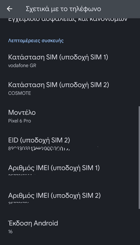 Πωλείται Pixel 6 Pro Stormy Black (12GB RAM, 256GB ROM, updated σε pure Android 16) σε άριστη κατάσταση χωρίς καμία γρατζουνιά. Χρήση προστασίας μπαταρίας (φόρτιση έως 80%) και γενικά προσεκτική χρήση στην φόρτιση (όχι <10% ή να σβήσει το κινητό).