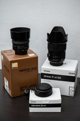 Sigma 35mm f/1.4 DG HSM Art (Nikon) & Sigma Dock & Nikon 50mm f/1.8G