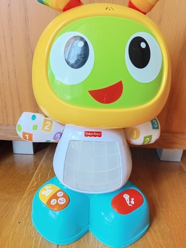 Πατήστε την κοιλίτσα του BeatBo ή ένα από τα υπόλοιπα κουμπιά στα πόδια του για τραγούδια, εκπαιδευτικό περιεχόμενο και χορευτικές κινήσεις. Ένα απίθανο φιλαράκι που επιτρέπει στη μαμά ή το μωρό να ηχογραφούν μία φράση και να την μιξάρουν στο αγαπημένο τους τραγούδι!
