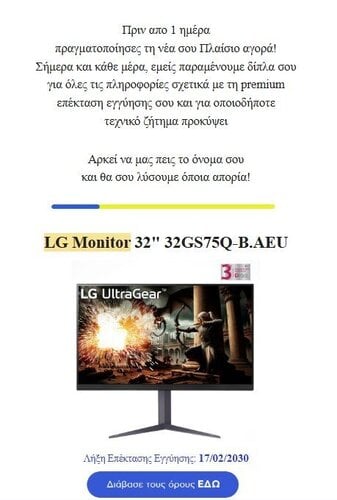 LG 32" 32GS75Q-B.AEU ΑΓΟΡΑ ΦΕΒ 2025 ΠΛΑΙΣΙΟ / 32 Ανάλυση οθόνης 2560 x 1440 180 hz