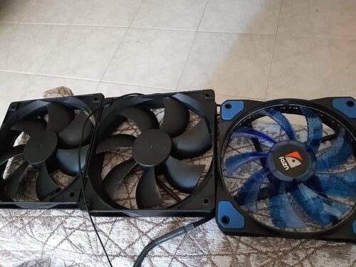 - 3 Ανεμιστήρες 120 2 μαύροι coolermaster και 1 με μπλε φτερά λαό μπλε φωτισμό από πλαίσιο. 8€ όλα μαζί!