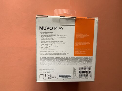 Creative Muvo Play Αδιάβροχο Ηχείο Bluetooth 10W Πιστοποιημένο με IPX7 για αντοχή στο νερό. MUVO Play της Creative ασύρματο ηχείο με πλούσια χαρακτηριστικά και εξαιρετική ποιότητα ήχου. Συνδέεται εύκολα μέσω Bluetooth 5.0 ή ενσύρματα μέσω της υποδοχής AUX-in (3.5mm), ενώ οι οδηγοί Dual-Micro και τα Dual Bass Radiators που ενσωματώνει επιτρέπουν να απολαμβάνεις την αγαπημένη μουσική δυνατά και καθαρά . Η αυτονομία της μπαταρίας αγγίζει τις 10 ώρες, ζυγίζει μόλις 360 γραμμάρια και μεταφέρετε εύκολα. Και με την τεχνολογία Wireless Link μπορείς να συνδέσεις δύο ηχεία μαζί απολαμβάνοντας ευρύτερο και πιο δυνατό στερεοφωνικό ήχο.