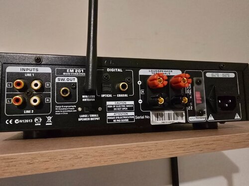 Ο στερεοφωνικός ενισχυτής EM-201 έχει σχεδιαστεί από λάτρεις της μουσικής, για να εξασφαλίσει ότι οι λάτρεις της υψηλής πιστότητας έχουν μια πιστή απόδοση της αγαπημένης τους μουσικής χάρη σε έναν συμπαγή ενισχυτή και με δύναμη 25W ανά κανάλι στις 8» και 35W στο 4.Αυτό το ενσωματωμένο είναι εξοπλισμένο με έναν ασύρματο δέκτη για να ακούει μουσική από ένα tablet ή ένα smartphone. Διαθέτει 4 αναλογικές εισόδους, μια είσοδο USB που σας επιτρέπει να αναπαράγετε ψηφιακά αρχεία που είναι αποθηκευμένα σε ένα USB stick με μορφή MP3 και WMA, καθώς και μια ψηφιακή είσοδο (οπτική και ομοαξονική) για τη σύνδεση ήχου με την τελευταία γενιά τηλεοράσεων. Το EM-201 διαθέτει επίσης υπογόνη έξοδο για να συνδέσει ένα ενισχυμένο subwoofer. Αυτή η έξοδος συνδυάζεται με έναν "μεγάλο / μικρό" επιλογέα που σας επιτρέπει να ενεργοποιήσετε ένα φίλτρο υψηλής διέλευσης για να βελτιστοποιήσετε την ακρόαση 2.1. Παραγωγή υπογούφερ με φίλτρο υψηλής διέλευσης (100 Hz) εναλλάξιμη.