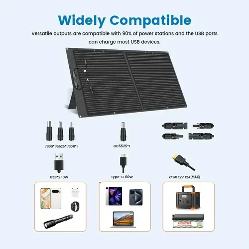 [Υψηλή συμβατότητα]: Χωρίς χάος προσαρμογέα! Με σύνδεση υψηλής ποιότητας MC4, 1M MC4 σε καλώδιο XT60/Anderson/5525 και προσαρμογέα 10 σε 1, ο ηλιακός πίνακας 100W είναι συμβατός με τους περισσότερους σταθμούς ηλεκτροπαραγωγής. Χωρίς ανησυχία για την περιπέτεια σας!