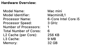 Mac mini (2018) i5 8th Gen 32 GB RAM 512 GB NVMe