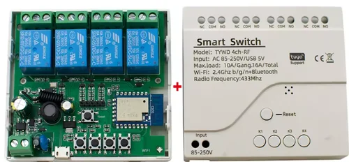 -Έξυπνος διακόπτης 4 επαφών για Αυτοματισμούς γενικής χρήσης με wifi με χειρισμό από το κινητό και όχι μόνο από οποιαδήποτε απόσταση για έξυπνο σπίτι. Έχει support από Alexa,Smart Life ,Tuya .Τιμή 10 ευρώ.