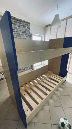 Π[ΩΛΕΙΤΑΙ ΔΙΠΛΟ ΠΑΙΔΙΚΟ ΚΡΕΒΑΤΙ ΣΕ ΑΡΙΣΤΗ ΚΑΤΑΣΤΑΣΗ. ΧΡΩΜΑΤΟΣ ΜΠΛΕ & ΞΥΛΟΥ ΜΑΖΙ ΜΕ ΞΥΛΙΝΗ ΣΚΑΛΑ, ΤΟ ΜΕΤΑΛΛΙΚΟ ΤΟΥ ΚΑΓΚΕΛΟ ΚΑΙ ΟΛΕΣ ΤΙΣ ΤΑΒΛΕΣ ΤΟΥ.