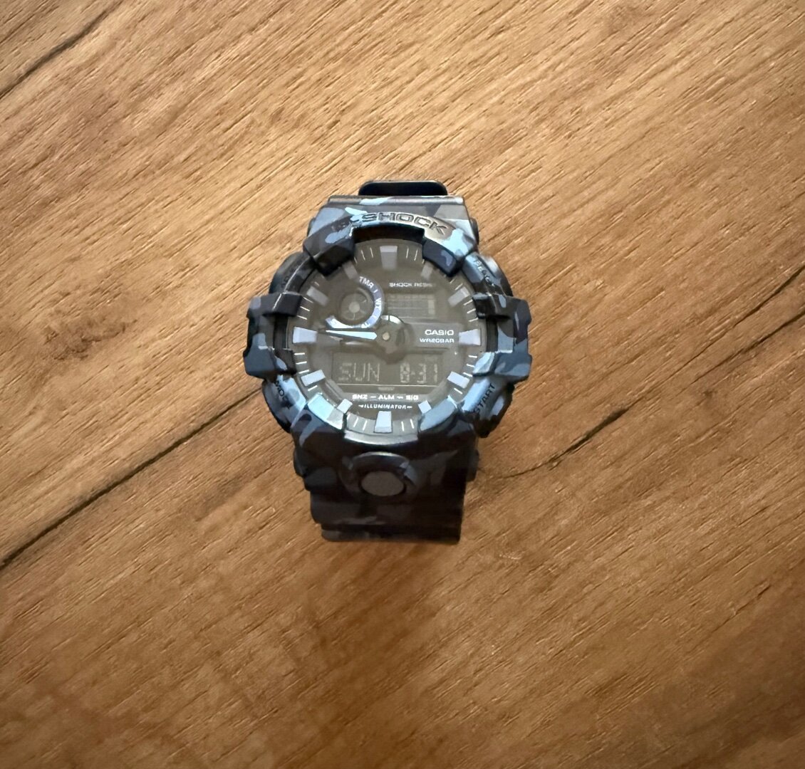 Ρολόι Casio G-Shock, σκούρο μπλε παραλλαγή. Είναι σαν καινούριο καθώς είναι ελάχιστα φορεμένο. Άριστη ποιότητα, στιβαρή κατασκευή, anti-scratch, shock resistant. Δίνεται με το κουτί του και με όλα τα χαρτιά του, 90 ευρώ.