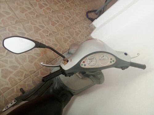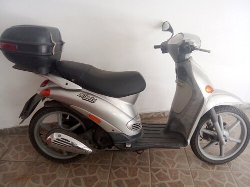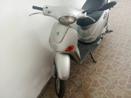 Piaggio Liberty 50cc τετράχρονο ασημί , σε πολύ καλή κατάσταση . Ο κινητήρας του είναι δυνατός , ρετάρει μονο λίγο εώς ότου ζεσταθεί, χωρίς αυτό να επηρεάζει τήν λειτουργία του . Ξεκινάει και φεύγει δηλαδή , απλά δουλεύει με ρετάρισμα τα πρωτα δευτερόπλεπτα . Με αλλαγή καρμπιρατέρ αυτό διορθώνεται . Εμένα όμως δέν με ενοχλεί και γι΄ αυτο ουδέποτε ασχολήθηκα να το επισκευάσω, αφού πάει πολύ κάλά για 50αρι και δεν καιει και πολλη βενζινη .
