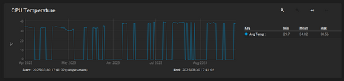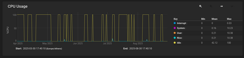 φαίνεται στις φώτος (από όσα logs κρατάει - 3 μηνο) η περισταστιακή χρήση και η λειτουργία CPU 0-1%, εκτός από τα scrub των δίσκων ανά τρίμηνο και τα backups που και που)