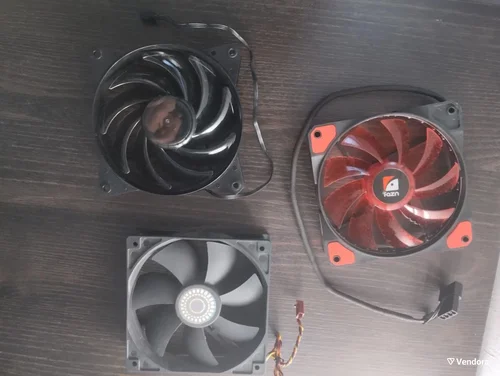 3 Fans 120mm Τα δυο μαυρα ειναι πληρως λειτουργικα , το κοκκινο λειτουγει μονο το led ( κολλάει οταν παει να γυρισει δεν γνωριζω αν διορθωνεται ) 5€