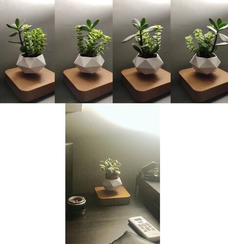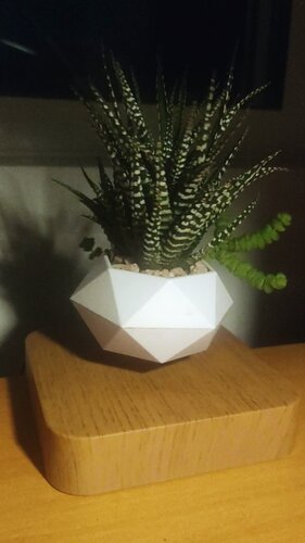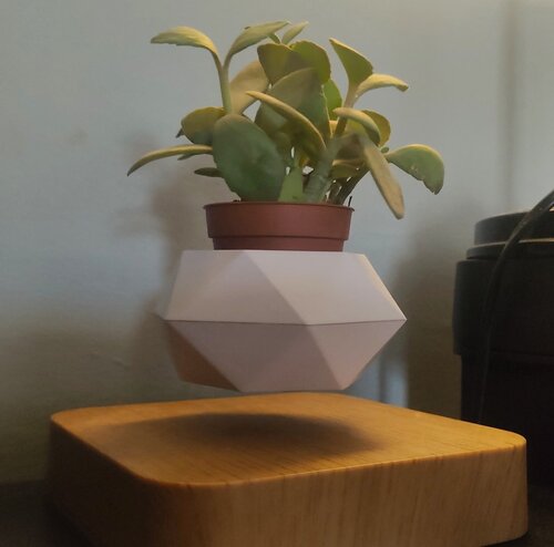 Γλαστρακι μπονσαι με βαση που μπαινει στο ρευμα και μαγνητιζει το γλαστρακι το οποιο αιωρειται περιπου 2εκ απο την βαση.